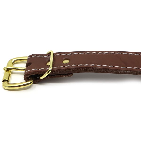 The 1 Inch 2 Ply Leather Center Ring Collar is made with two layers of thick durable high quality leather that will stand the test of time on the hard working gun dog. This leather collar is stitched, oil finished for consistent color and pliability, and has riveted construction to maintain strength and integrity. There is nothing better than natural material that breathes with the conditions. The more it is used the more comfortable it becomes. The 1 Inch 2 Ply Leather Center Ring Collar Brass is Proudly made in America and uses the finest quality brass roller buckle, center ring, tuck loop and rivets.