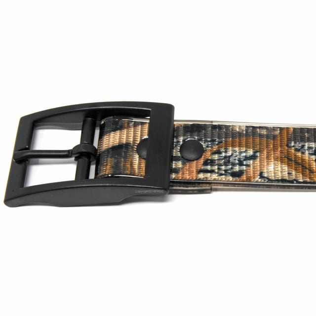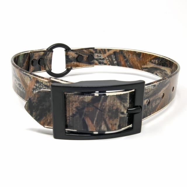 The 1 Inch Realtree Max 5 Camo Center Ring Collar is made from SunGlo material that incorporates 2 ply high quality nylon polyurethane coated webbing. These collars are made of a durable waterproof non-porous material that does not absorb odors or stains and cleans up easily with soap and water. The in-line riveting design coupled with heavy duty flat black plated hardware make this collar virtually indestructible. The 1 Inch Realtree Max 5 Camo Center Ring Collar is Proudly Made in America and is constructed with the finest quality materials.