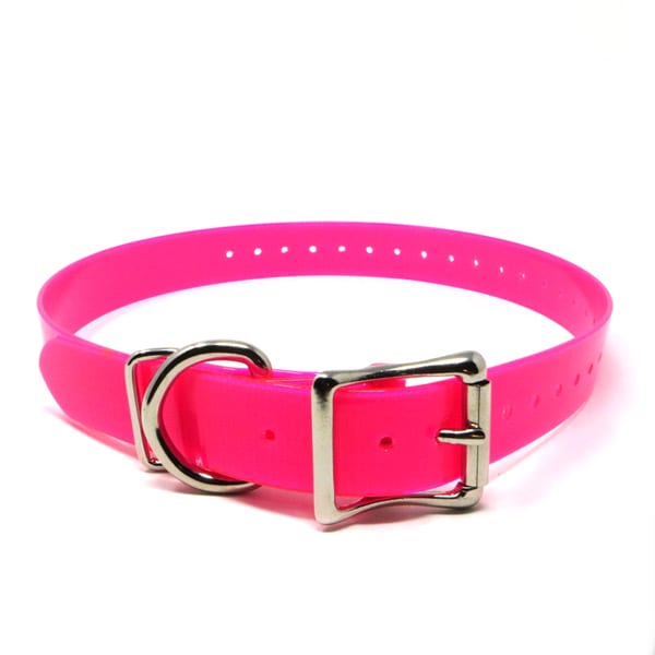 Because collars typically come with few color options, this is a great way to add a unique color reference to your E-Collar system. Available in seven colors: Black, Red, Blue, Pink, Orange, Neon Yellow, and Neon Green. Please measure the actual size of your dog's neck prior to ordering to ensure it is within 11" to 25 1/2" size range.