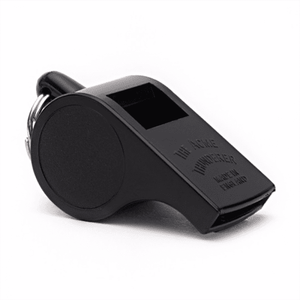 The Acme 558 Thunderer Whistle is the largest of the 3 Thunderer Whistles and is made of compression molded black plastic.  The Acme 558 Thunderer has a deep tone and produces a loud ranging whistle.  The 558 is made from tough and bite resistant polycarbonate offering longer life than standard plastics.