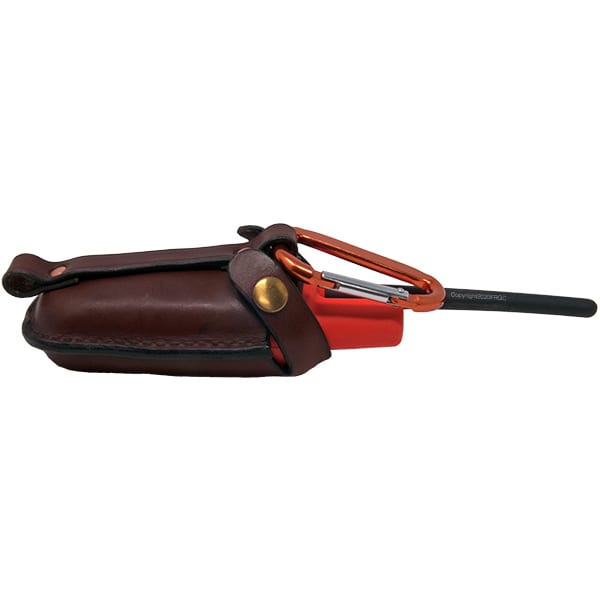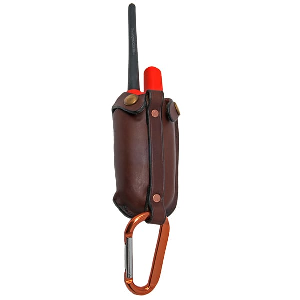 The Astro All Around Carrier is hand crafted in the USA from 8-10 oz. English Bridle Leather and is designed to work with the Garmin Astro 430 and 320 transmitters.  The Astro All Around Carrier is all about versatility with optional carabiner placement for carrying upside down or right-side up.  Additionally, the all around carrier has a belt loop built into the unit allowing it to hang-right side up or upside down. All mounting loops are secured with solid copper double cap rivets. The unit is secured within the carrier by two 1/2″ leather straps that snap to the body of the holster. To sum it up, this is one versatile holster.