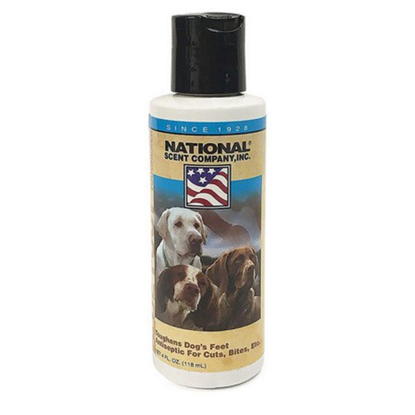 Blue Foot Pad Conditioner by the National Scent Company is used to toughen and condition your dog's feet for hunting on rough ground, rocks and ice. Blue Foot Pad Conditioner is also as an antiseptic for scrapes and minor cuts.