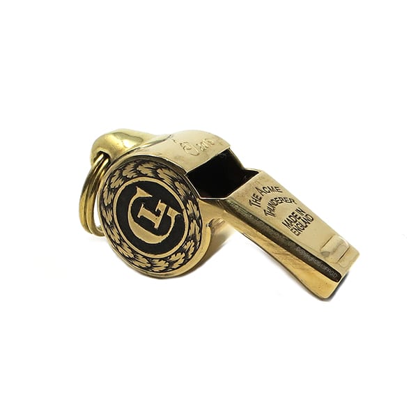 Our Custom Engraved Whistle is offered on both the larger Acme Thunderer 59.5 Whistle Polished Brass and the smaller Acme Thunderer 60.5 Whistle Polished Brass.