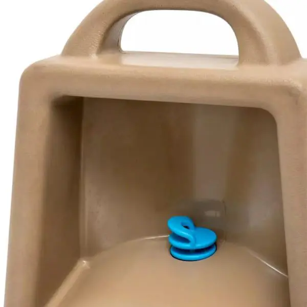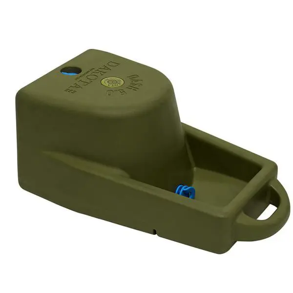 Designed with hunters in mind, this unit holds up to 5.0 gallons of water. To use the unit, simply lift up the handle end and remove the rubber plug. There's a small recess to store the plug on the bottom, so when you lay it down, your dog won't chew it. Once the Dakota 283 Dash 5.0 Watering System is laid down with the plug removed, the bowl area will fill with water. When the dog starts drinking, water will constantly backfill to ensure they don't run out. When it's time to go, just tilt the unit up to return left over water inside and push the plug back in place. It's great for trips to the woods, field, vacation or even just as a regular water station at home.