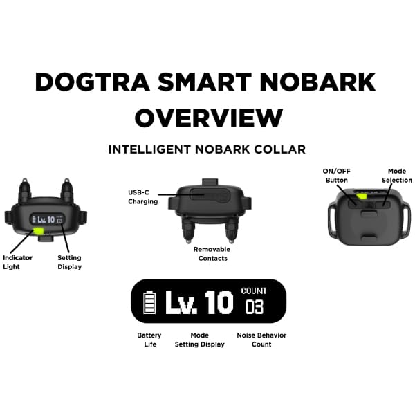 The Dogtra Smart NoBark is our most accurate no bark collar yet, detecting barking, whining, and howling with a triple detection system that filters out false triggers. Paired with an app that tracks your dog’s barking behavior and offers e-collar control, it gives you full oversight and control, all while ensuring your dog’s safety while improving barking behavior.