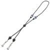 A round center braided slide moves up and down the lanyard to ensure a desired fit. Adjustment of the center braided knot allows for the two ends to be positioned even or offset. The lanyard measures approximately 22″ long with the two ends positioned even.