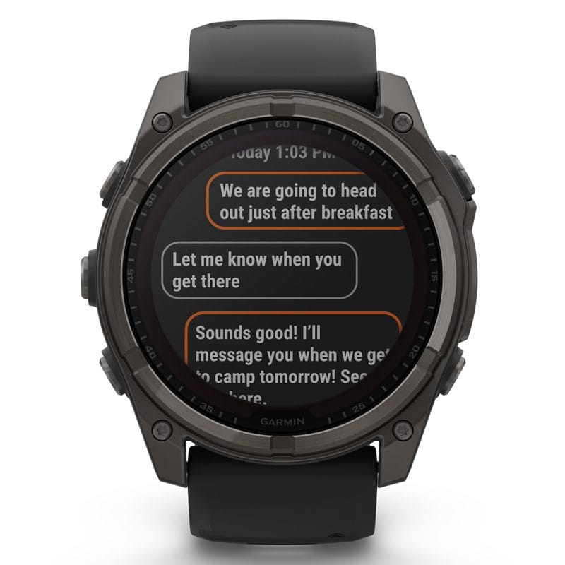 The Garmin Fenix 8 Solar GPS smartwatch is built for serious athletes and outdoor adventurers who want to push beyond their limits. It features a 1.4” solar charged display with scratch-resistant sapphire lens, durable titanium bezel and advanced strength training plans and targeted workouts to boost your body’s stamina and performance. Pair with your smartphone for on-wrist calling with the built-in speaker and mic. Plus, there’s a powerful built-in LED flashlight for after-dark visibility. Go strong with solar power that extends battery life up to 149 hours in GPS mode (assumes continuous use for entire period in 50,000 lux conditions).