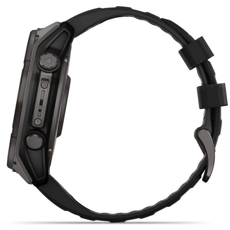 - Sapphire, Carbon Gray DLC Titanium with Black/Pebble Gray Silicone Band