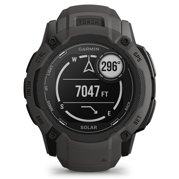 Navigate your next trail with ABC sensors, including an altimeter for elevation data, barometer to monitor weather and 3-axis electronic compass.