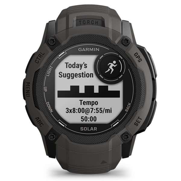 The Garmin Instinct 2X Solar is a rugged GPS smartwatch tough enough to keep up with you and bold enough to fit your style. Its expansive solar charging lens keeps a larger battery going longer— powering advanced training features, a built-in flashlight, multi-band GNSS, health/wellness monitoring sensors and much more.
