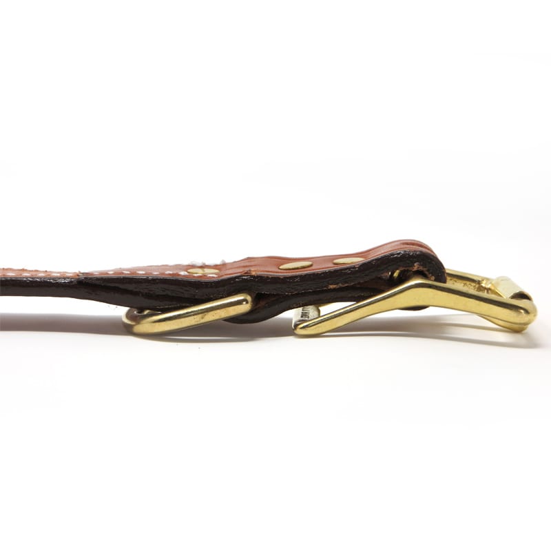 The 1 Inch London Tan Deluxe Leather Center Ring Collar is made with thicker more durable high quality leather grown in the Northern region of the USA. The leather has hand finished edges, and a non-oily English Bridle Leather finish for consistent color and pliability. Eight or more lock stitches per inch are used for proper leather stitching techniques (no cross-grain stitching) to maintain material strength and integrity of the leather. A skive leather craft cut is used on the flesh side of the leather to create a tapered thickness where leather pieces are joined to ensure a better finish, more pliable product, and a smooth transition where the collar contacts your dog's neck. The 1 Inch London Tan Deluxe Leather Center Ring Collar is an American made product and uses the finest quality solid brass hardware.