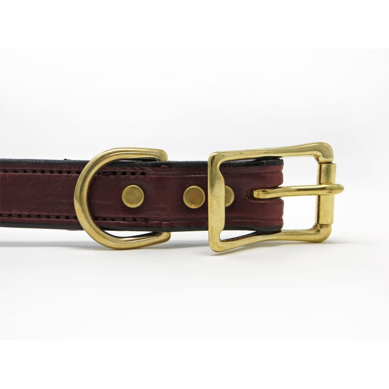The 1 Inch Mahogany Deluxe Leather Center Ring Collar is made with thicker more durable high quality leather grown in the Northern region of the USA. The leather has hand finished edges, and a non-oily English Bridle Leather finish for consistent color and pliability. Eight or more lock stitches per inch are used for proper leather stitching techniques (no cross-grain stitching) to maintain material strength and integrity of the leather. A skive leather craft cut is used on the flesh side of the leather to create a tapered thickness where leather pieces are joined to ensure a better finish, more pliable product, and a smooth transition where the collar contacts your dog's neck. The 1 Inch Mahogany Deluxe Leather Center Ring Collar is an American made product and uses the finest quality solid brass hardware.