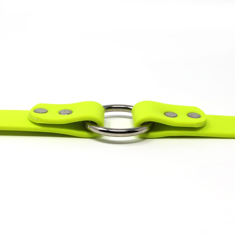 The K-9 Komfort 1 Inch TufFlex Neon Yellow Center Ring Collar is matched to go with the K-9 Komfort TufFlex Neon Yellow Lead 3/4 in. by 4.5 ft and 6 ft.