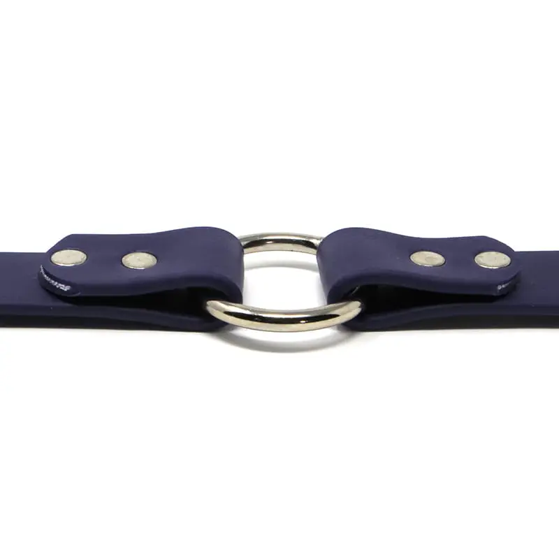 The K-9 Komfort 1 Inch TufFlex Purple Center Ring Collar has the feel of soft leather with the added benefits of being waterproof, odor resistant and cleans up easily with a damp sponge. The PVC coating over the high strength nylon webbing core allows this collar to remain soft and flexible down to -20 degree temps. The in-line riveting design coupled with the solid nickel plated steel hardware make this collar virtually indestructible.