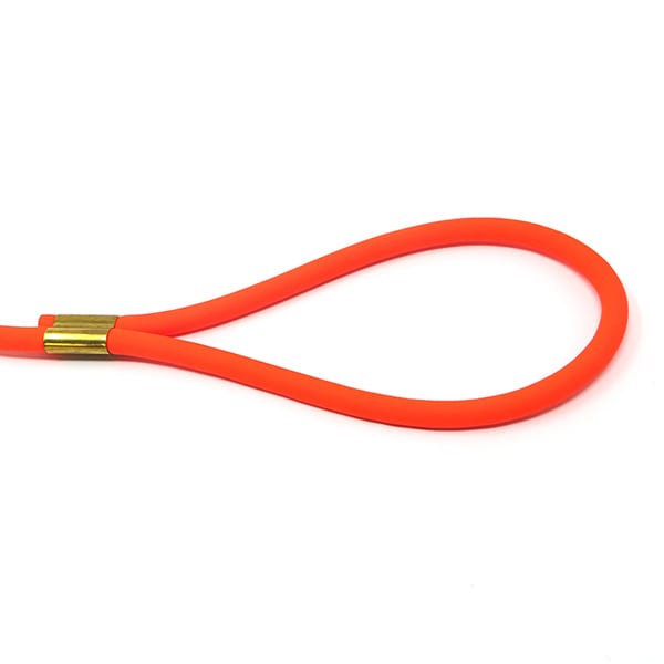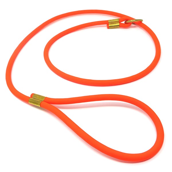 The Beta Orange Round Slip Lead is a very effective and easy to use training tool. The lead is made with BioThane® Beta PVC coated polyester rope, has a 3/8″ diameter and uses solid brass hardware. This lead has a soft feel with the added benefits of being waterproof, odor resistant and cleans up easily with a damp sponge. The PVC coating over the high strength polyester core allows these leads to remain soft and flexible down to -20 degree temps.