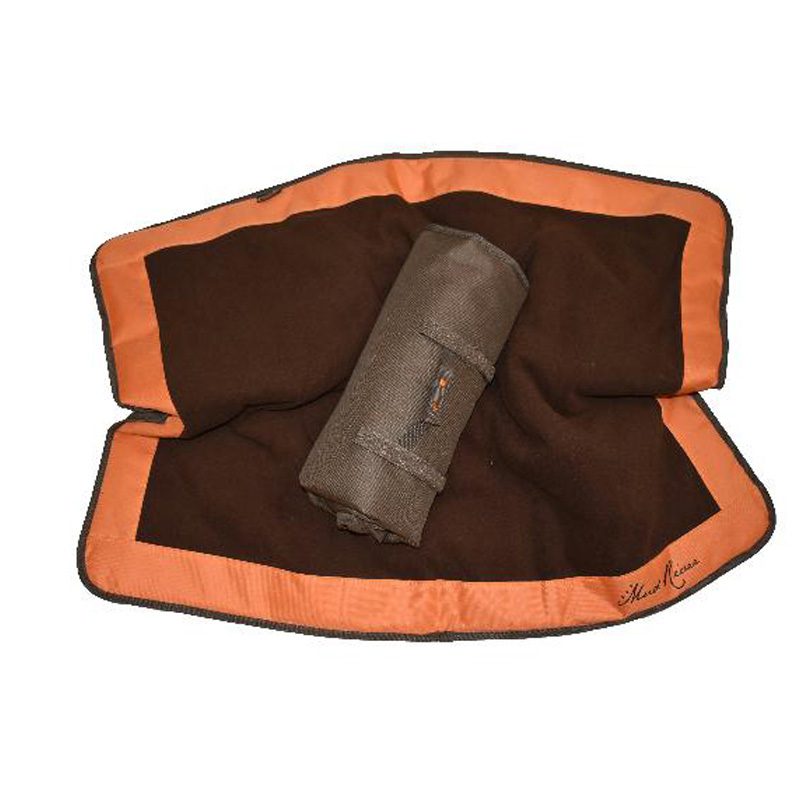 The Mud River Cache Cushion is a portable dog bed that is ideal for travel. Outer edges are constructed of 600D nylon while the interior is lined with 200 weight double sided fleece. The industrial strength PVC bottom will keep the pad dry and is easy to clean. Two velcro straps secure the rolled cushion in compact form and a carry handle allows for easy transport.