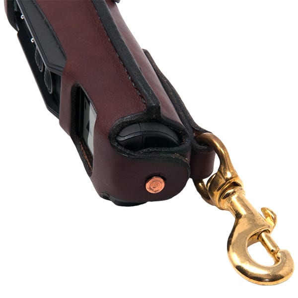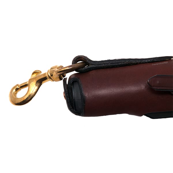 The PRO 550 Plus Saddle Carrier is hand crafted in the USA from 8-10 oz. English Bridle Leather. The PRO 550 Plus Saddle Carrier is designed to securely attach to a saddle using the 3 1/4 " long solid brass snap. The transmitter hangs down in the holster when secured to your saddle. The top of the transmitter is secured within the carrier using a 1/2″ leather strap and a heavy duty solid brass roller buckle. Additionally, all leather joints are secured with solid copper double cap rivets.