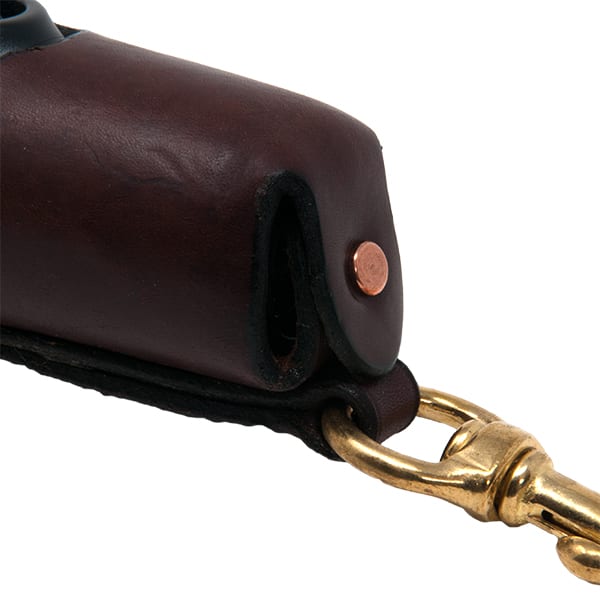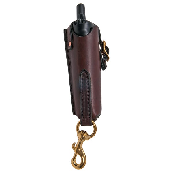 The PRO Saddle Carrier is hand crafted in the USA from 8-10 oz English Bridle Leather and is designed to work with the Garmin PRO 550 and PRO 70 transmitters. The PRO Saddle Carrier is designed to securely attach to a saddle using the 3 1/4 " long solid brass snap. The transmitter hangs down in the holster when secured to your saddle. The top of the transmitter is secured within the carrier using a 1/2″ leather strap and a heavy duty solid brass roller buckle. Additionally, all leather joints are secured with solid copper double cap rivets.