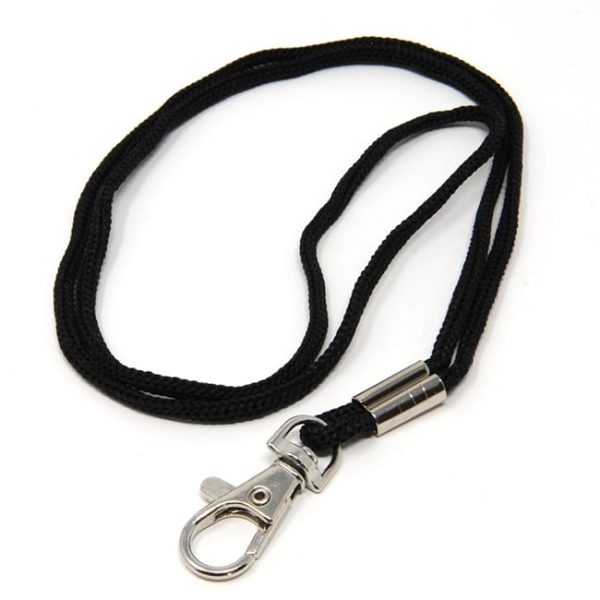 The Swivel Hook Neck Lanyard, Black, is made with nickel plated hardware and 1/4" polyester cord.